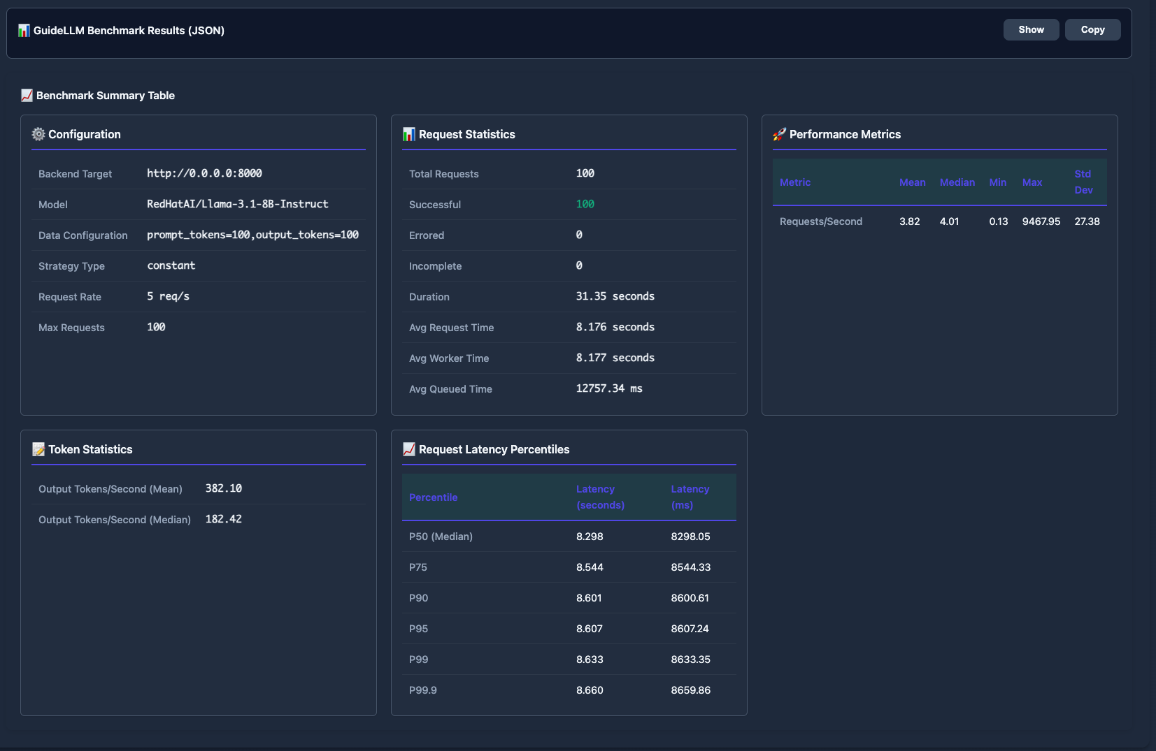 • Latency percentiles (P50, P75, P90, P95, P99)